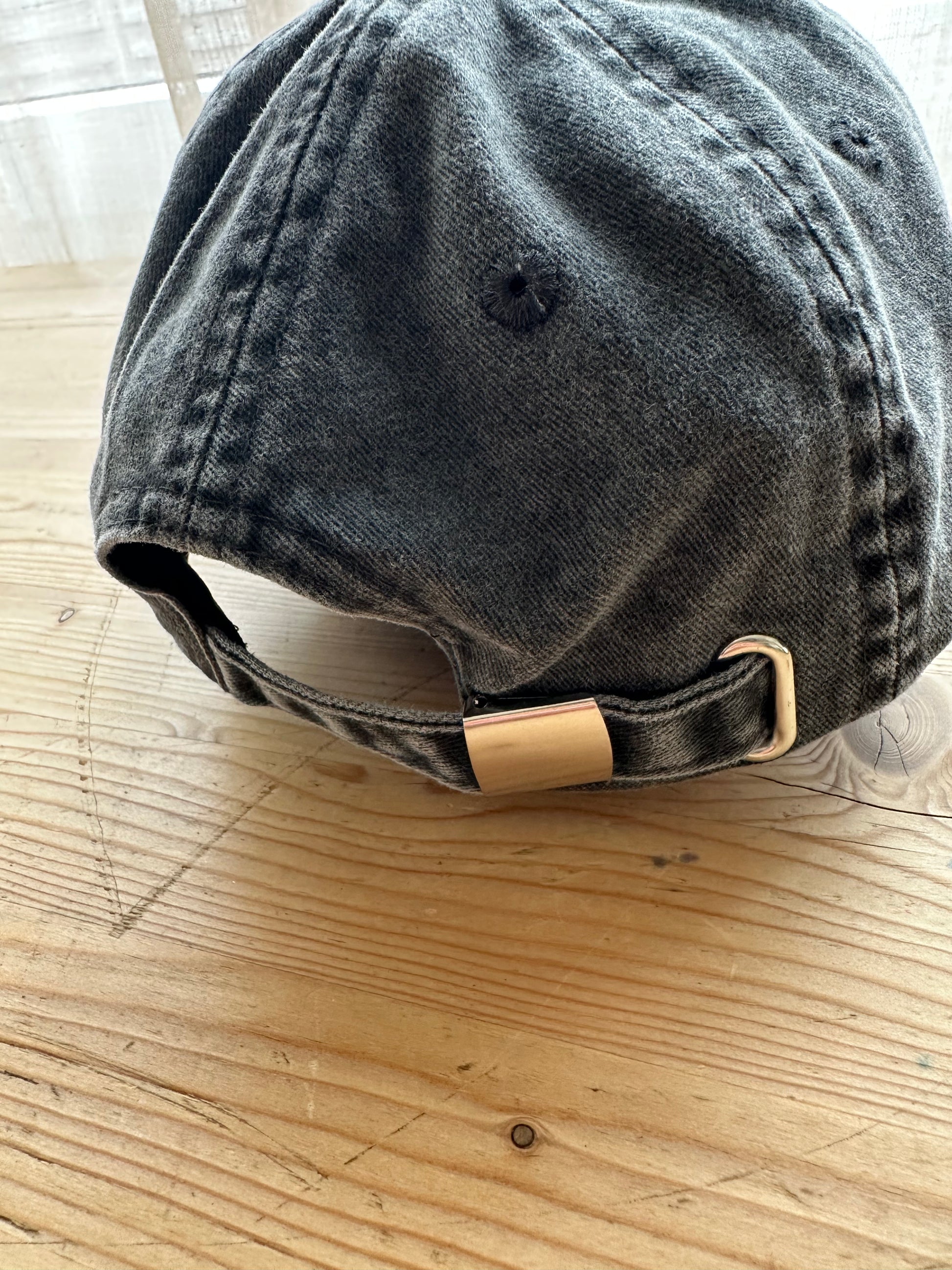 our surfers paradise cap in washed black for a vintage look. made from 100% cotton with high quality embroidery.
